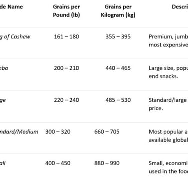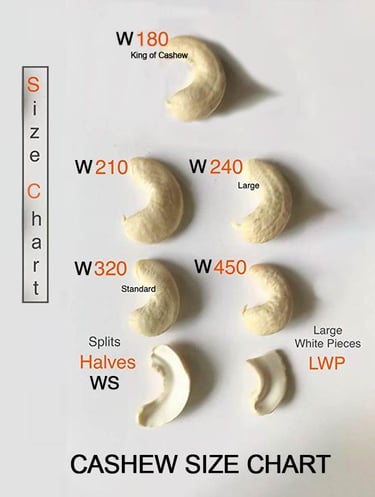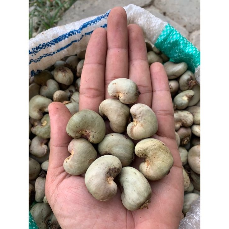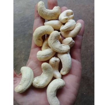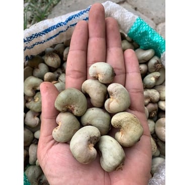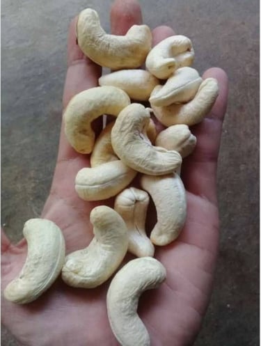 Inside the hard shell is the ivory or cream-colored cashew seed /cashew nut, consisting of two large, tasty and crunchy cotyledons. Cashews are nutrient-dense, containing approximately 553 kcal per 100 grams, rich in protein (18g), unsaturated fats, and essential minerals such as iron and magnesium. To obtain ready-to-eat cashews, the true fruit must go through several stages: